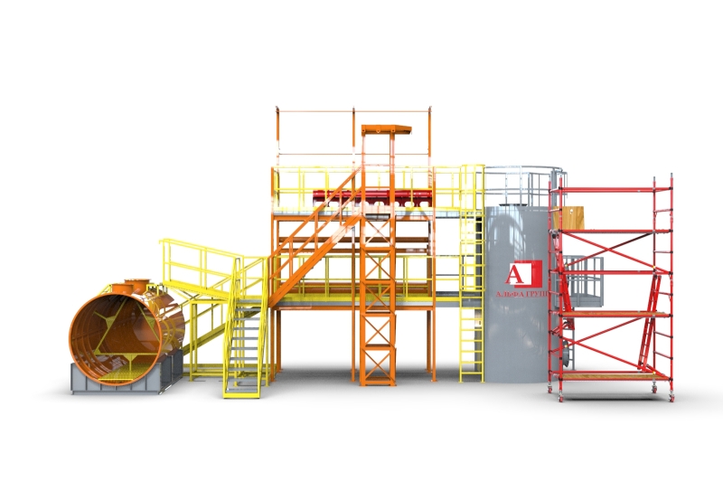 Конструктив уровней надежно крепится болтовыми соединениями к узлам и опорам полигона.